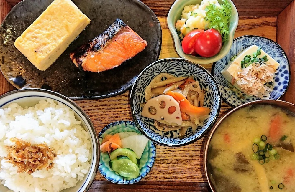 鰹だしで出汁をとったお味噌汁や、薬膳茶など健康を意識した朝食で旅の活力に