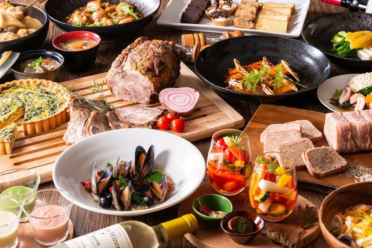 地元の富士桜ポークや甲州名物の煮貝、種類豊富なワインを味わうことができます。