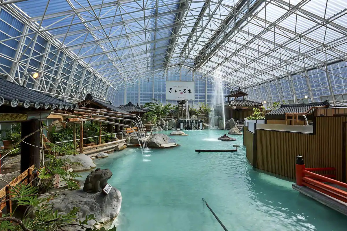 日本でも有数の大きさを誇る庭園大浴場でのびのび過ごすことができます。