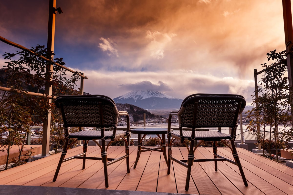 充実のステイが楽しめる『湖のホテル』をセレクト。富士山と河口湖を眺望できるレストラン(要予約)や静かな時間の流れるスカイバーなど、ゆったりとした時間を過ごせます。