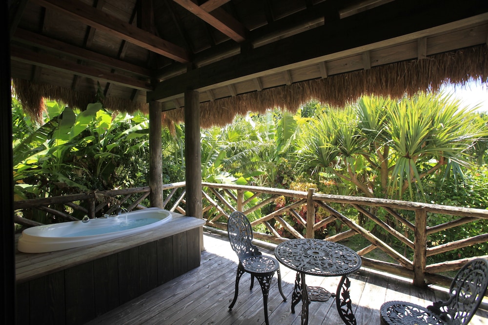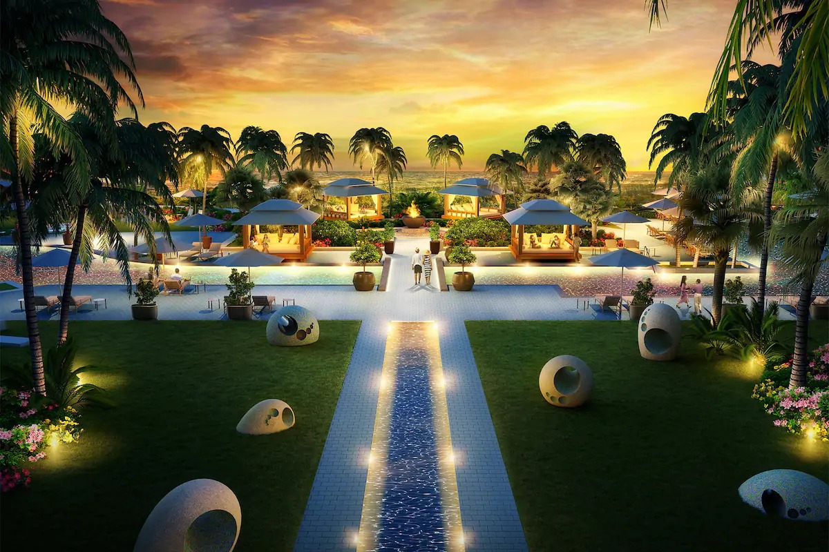 ポリネシア風の茅葺屋根が並ぶビレッジ