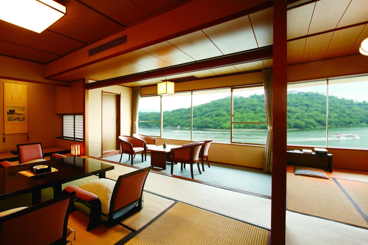 二間続きの広々とした客室から、浜名湖の景色を一望できます。