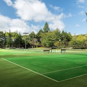 思わず深呼吸したくなるような最高のロケーション。ジムやテニスコースで体を動かしたあとは、露天風呂に入ってスッキリ。