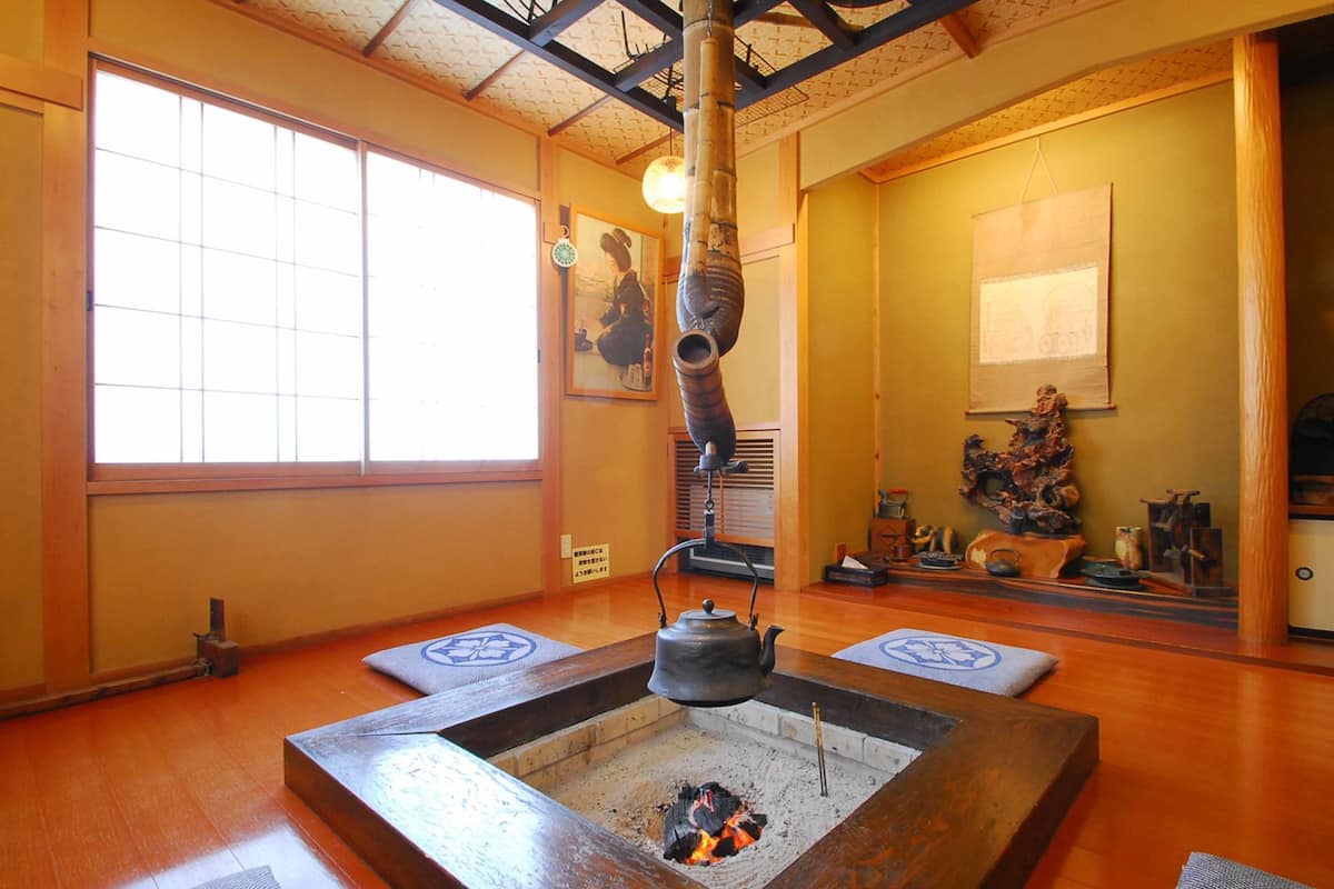 昔懐かしい囲炉裏や骨董品が飾られた歴史ある宿です。床暖房もついているので、少し冷え込む夜も快適に過ごせます。