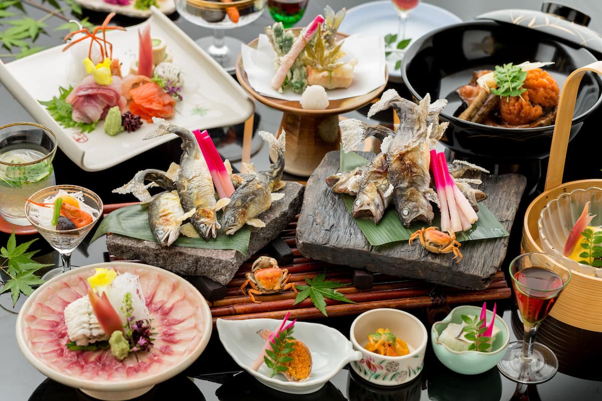 ひんやり冷たい空気と川のせせらぎを楽しみながら、本格的な京会席を味わうことができます。