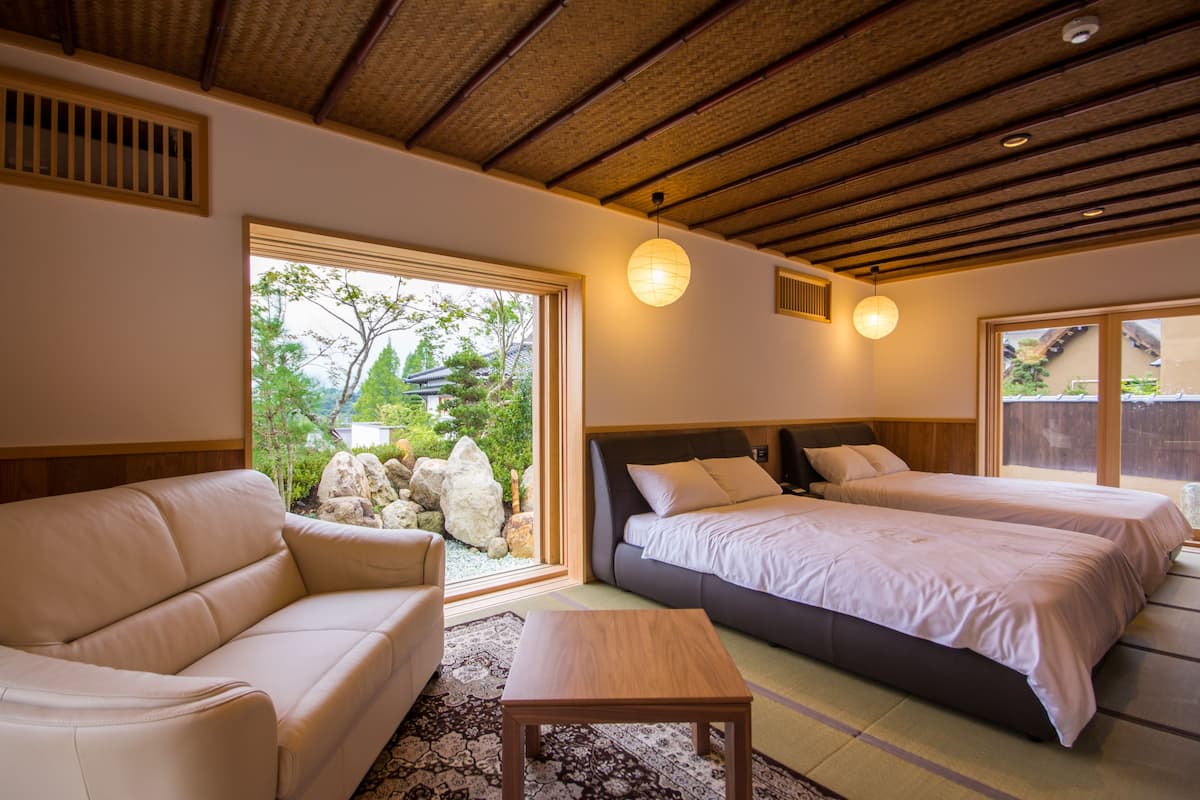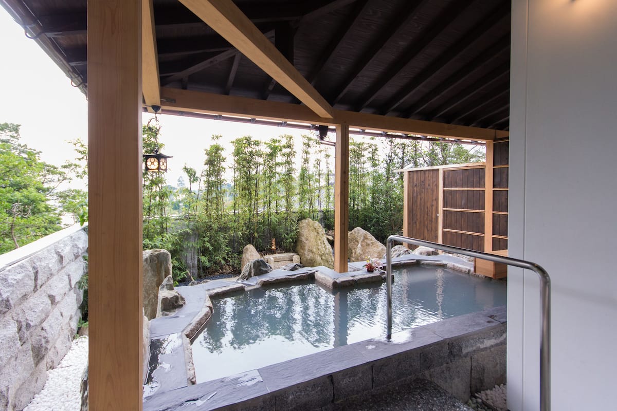 澄んだ空気のなかで、満点の星空を望む露天風呂を満喫しましょう。湯上がりには、庭園をのんびり散歩するのがおすすめ。
