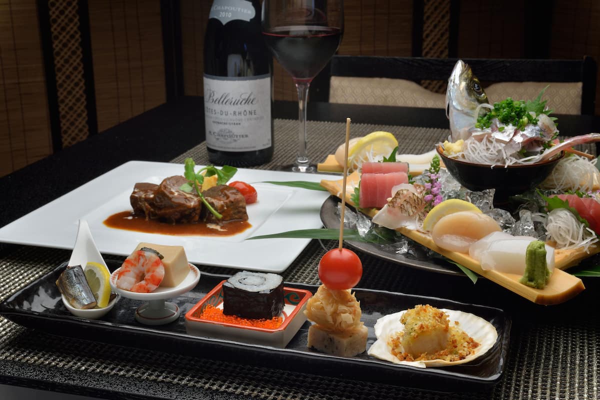 国産和牛から旬の海鮮まで、海山の食材を使った会席料理を満喫できます。