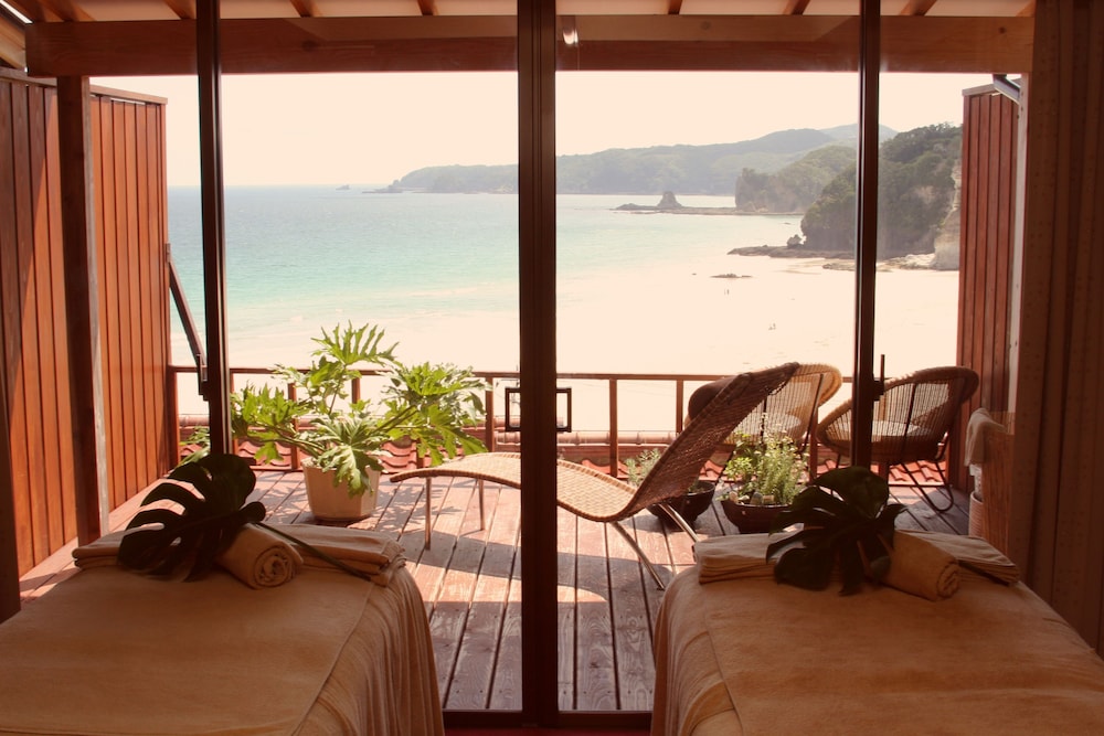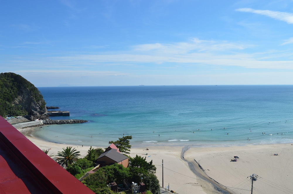 目の前には多々戸浜が広がり、気軽に海水浴を楽しめます。サーファー専用の更衣室や温水シャワーがあるのが嬉しいポイント!