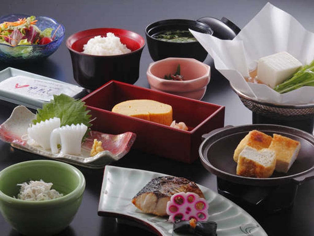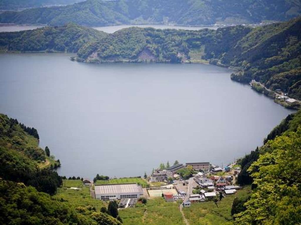 ホテルの船着場発、三方五湖の水月湖・菅湖を巡る約40分のクルーズ。流れる景色を眺めながら朝食を船内で食べられます。