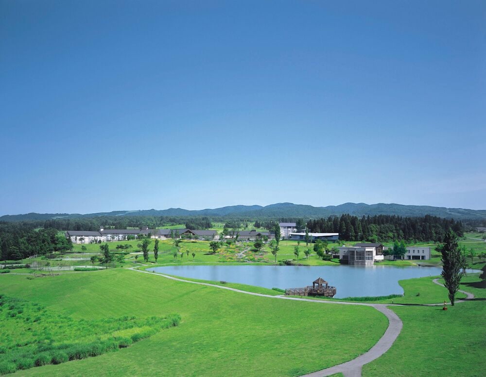 のどかな田園風景が広がる南魚沼。まずは、カフェや飲食店が集まる「魚沼の里」から見て回ります。近くには広々としたひまわり畑も。