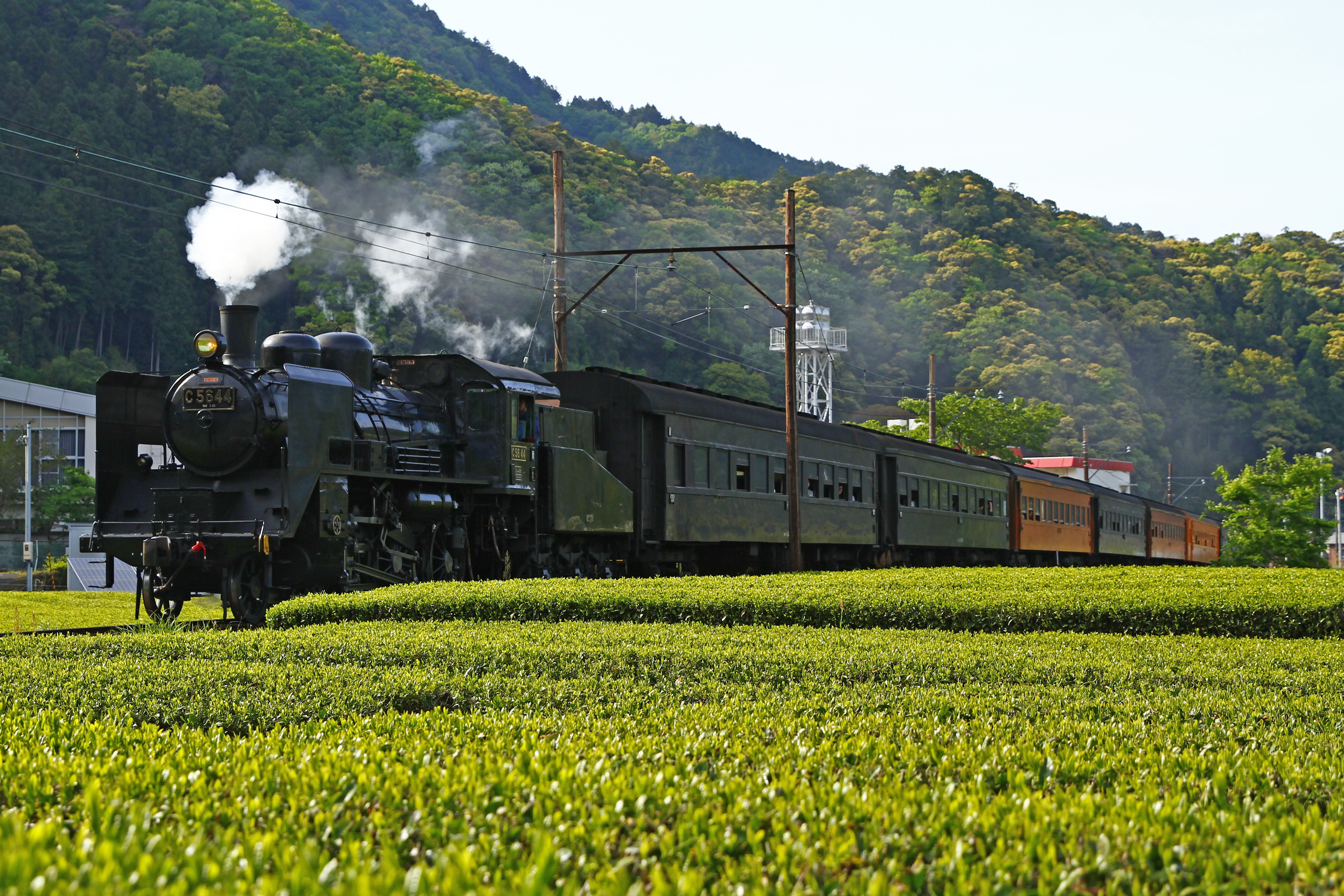 SLかわね路号に乗って、千頭駅を目指します。乗車前には駅弁を購入して、のどかな風景を眺めながら、ゆったりSL旅を楽しみましょう。車内販売の「SL動輪焼き」も人気です。