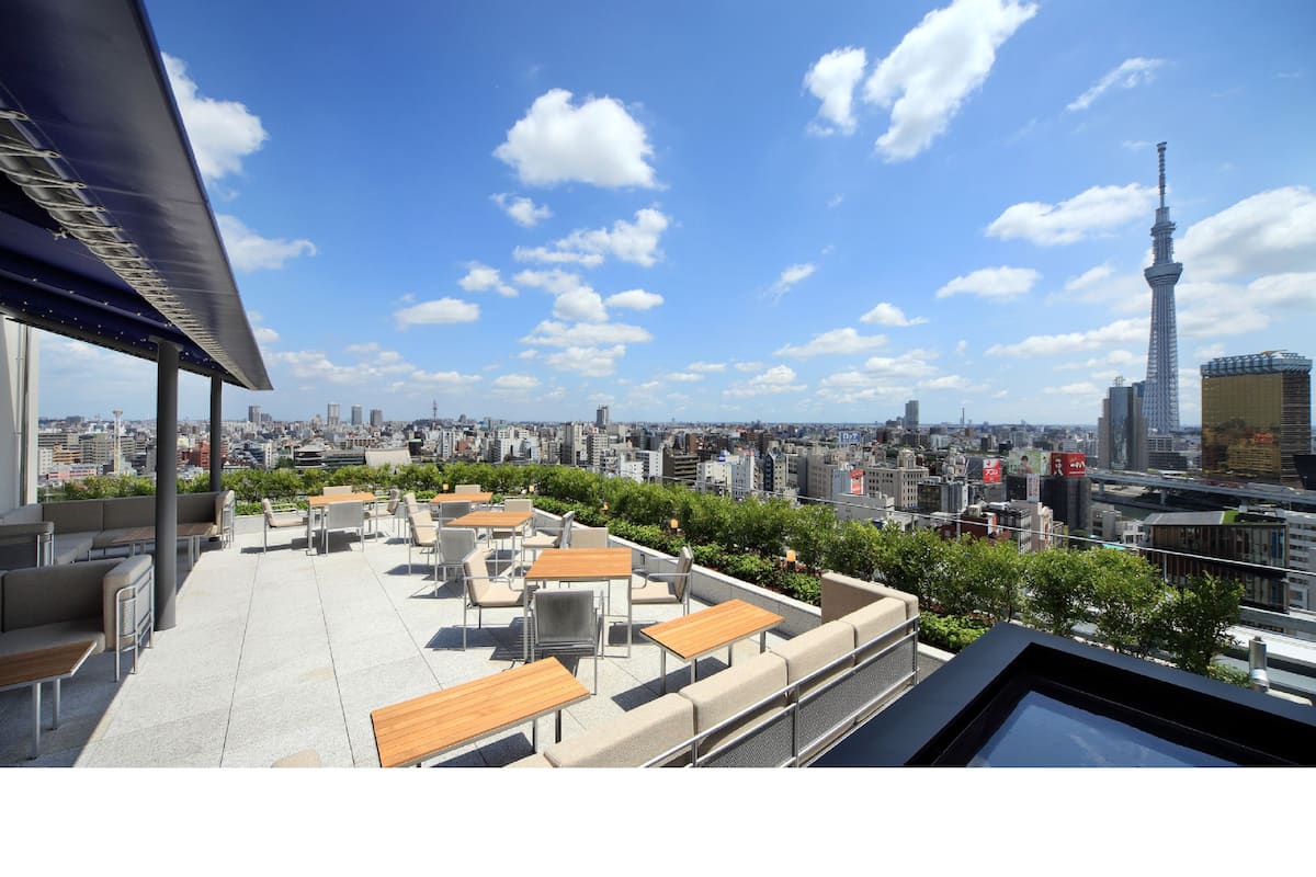 全面ガラス張りのロビーや、大人な雰囲気のレストラン・バーからは東京の下町の景色を楽しめます。