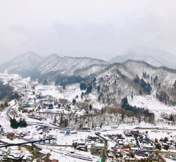 空港の展望デッキからは、雄大な奥羽山脈の景色を楽しめます。レンタカーを借りて、旅のスタート!