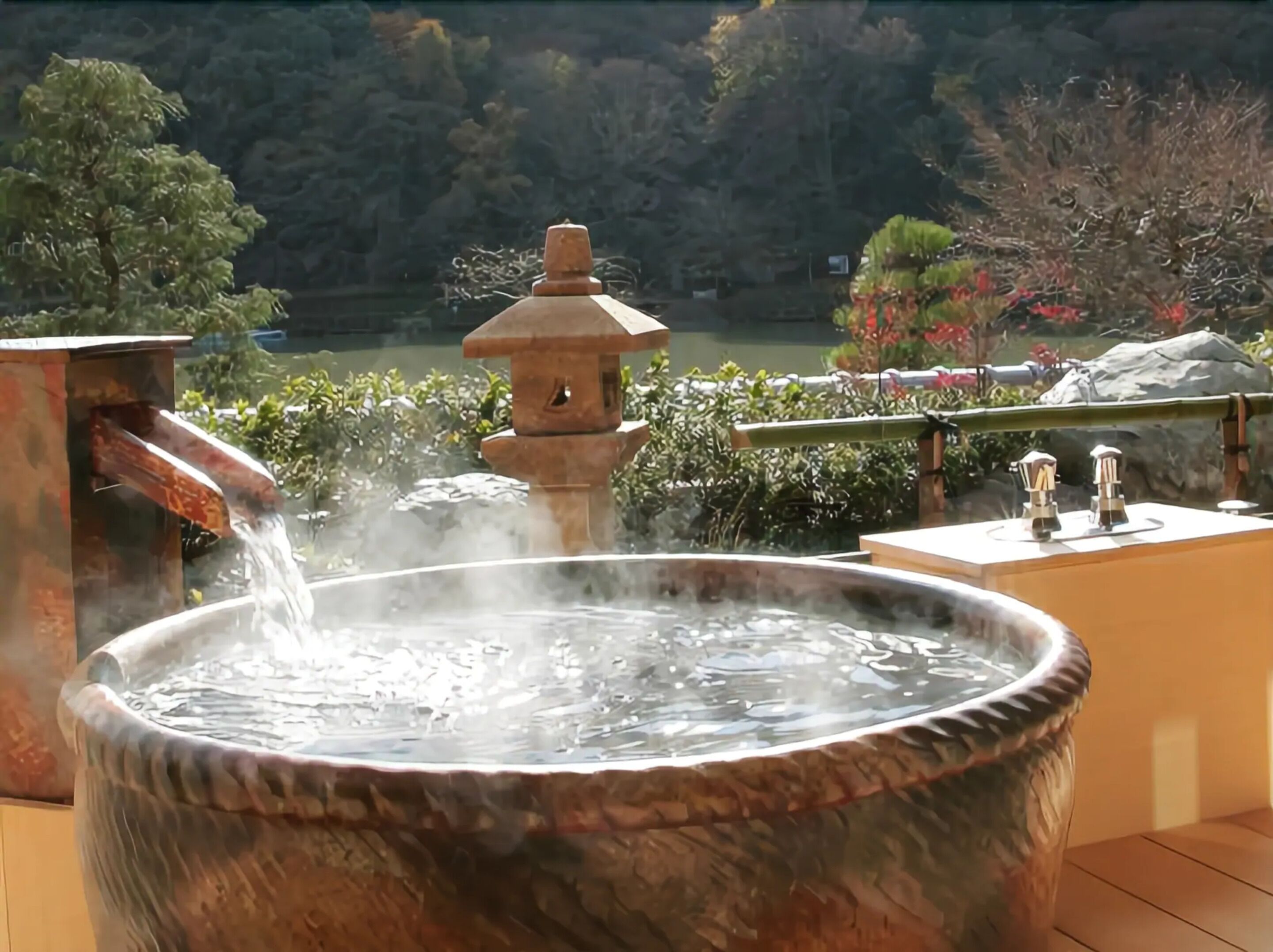 大堰川・嵐山を望む露天風呂で癒される
