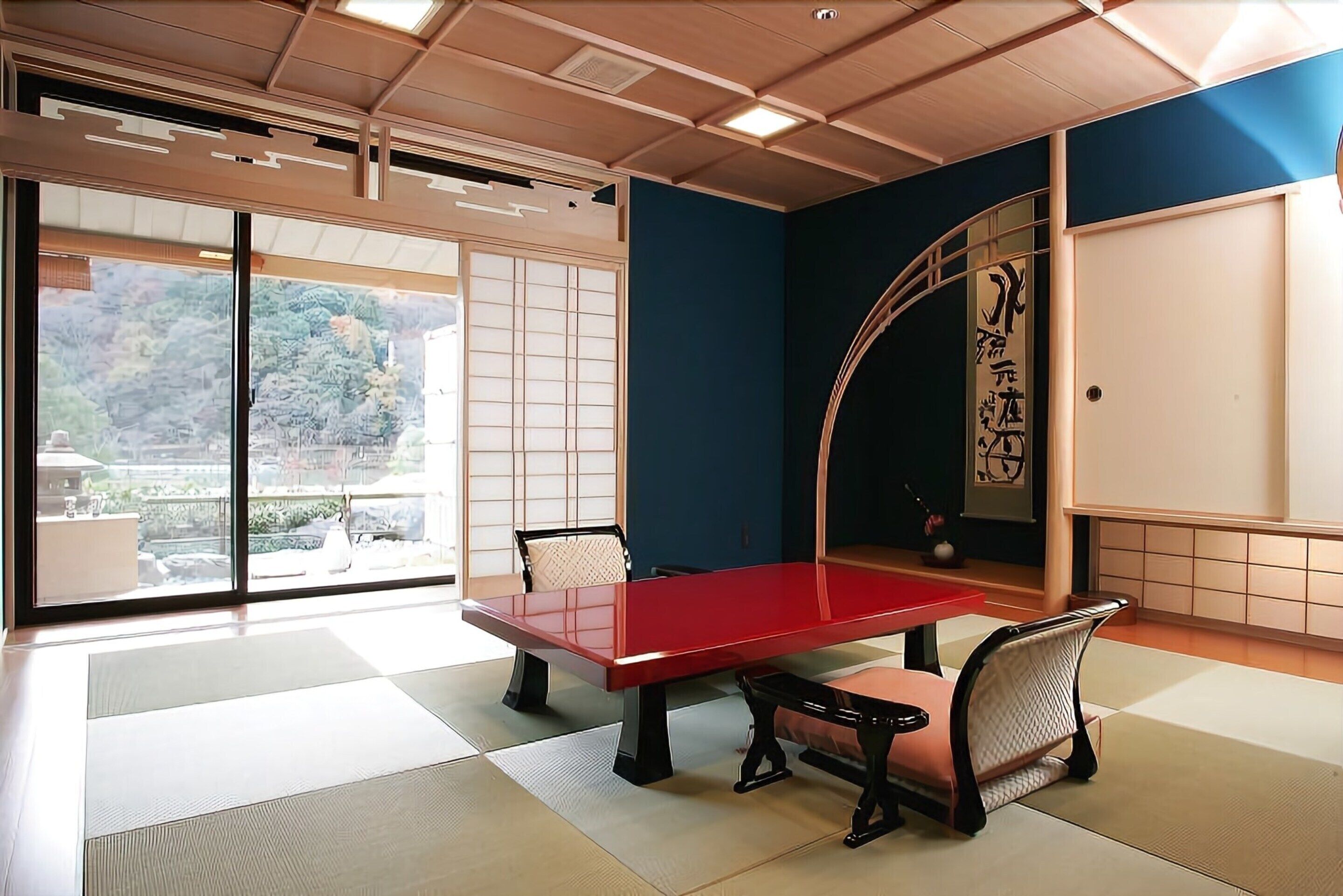 露天風呂付きの特別室でプライベートな空間を満喫。嵐山の景色を眺めながら、源泉掛け流しの露天風呂で旅の疲れをじっくり癒しましょう。