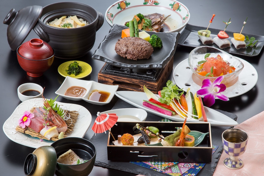 阿蘇あか牛ステーキや馬刺しなどが味わえる、創作会席を堪能しましょう。