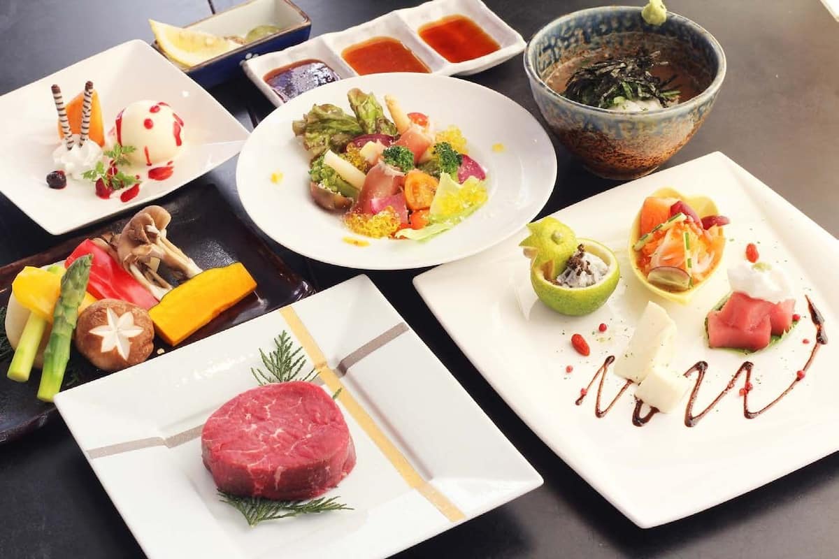 三崎直送マグロなど、三浦の味覚が盛りだくさん。和食会席などバイキング以外の食事も楽しめます。