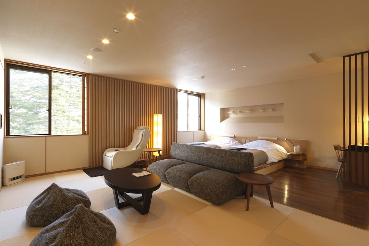 全ての客室がスイートタイプ!2階建てのメゾネット形式で、のびのびと過ごせます。