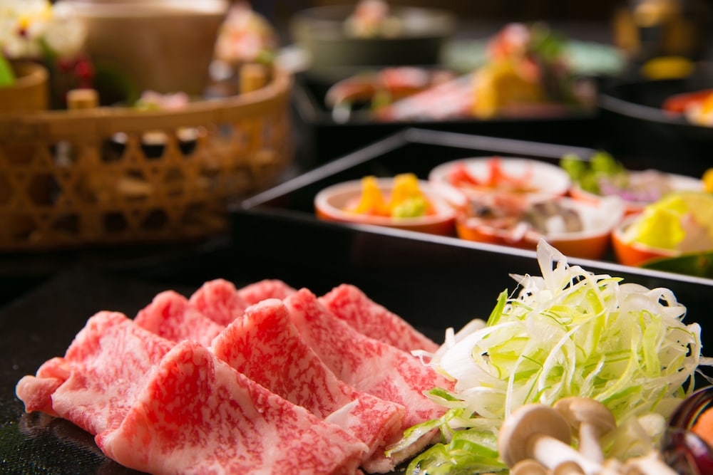 鹿児島黒牛と旬の食材を主役にした、季節の懐石料理を味わえます。自家牧場で育てた、きめ細かい霜降りの入った絶品和牛を堪能。