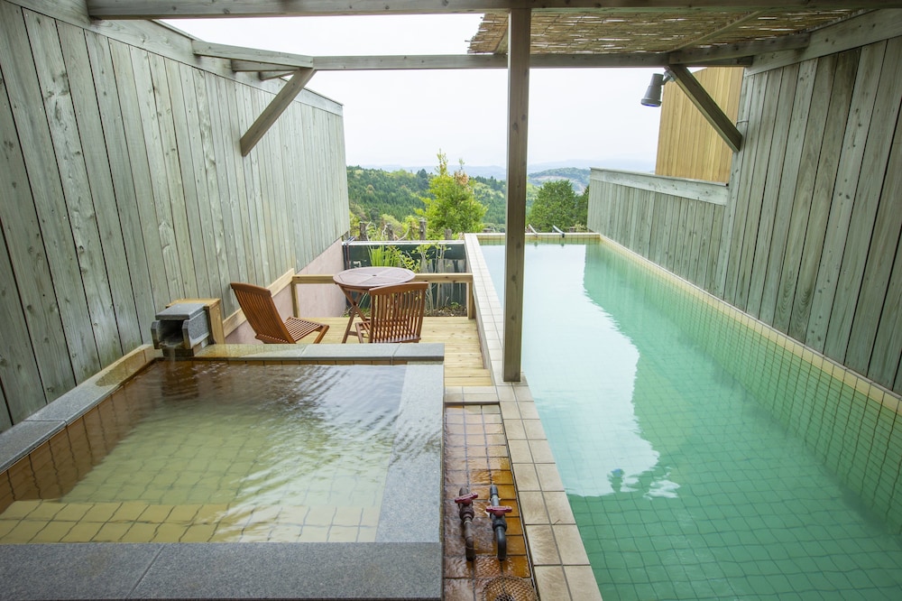 客室のテラスからは、高千穂の峰や桜島を一望できます。豊かな緑に囲まれて、リフレッシュできるおすすめの宿!