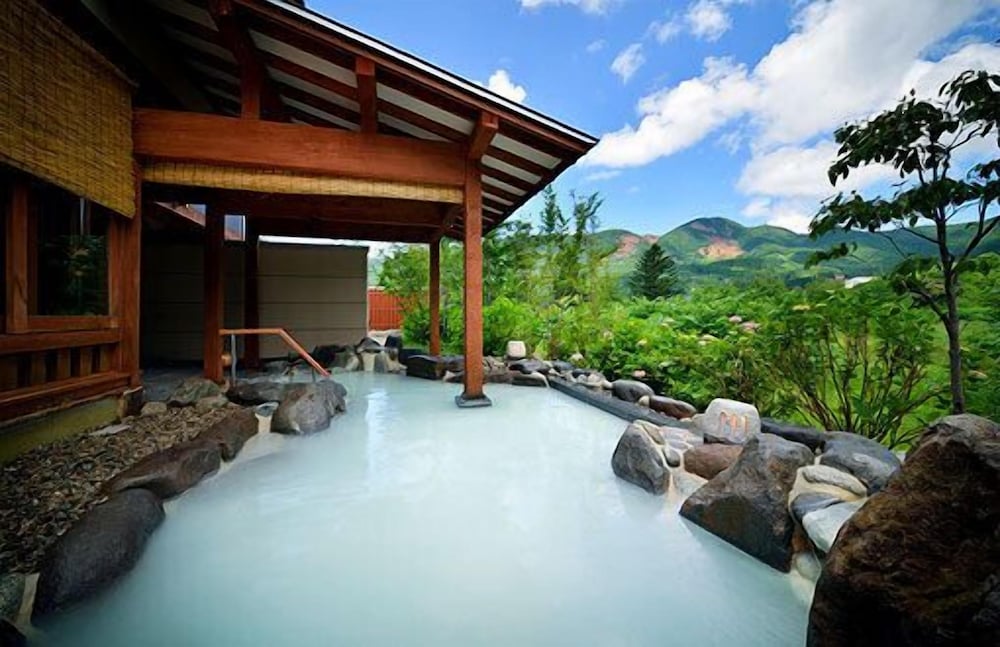 源泉掛け流しの露天風呂を堪能。硫黄の香りが漂う天然温泉にじっくり浸かって、旅の疲れを癒やしましょう。