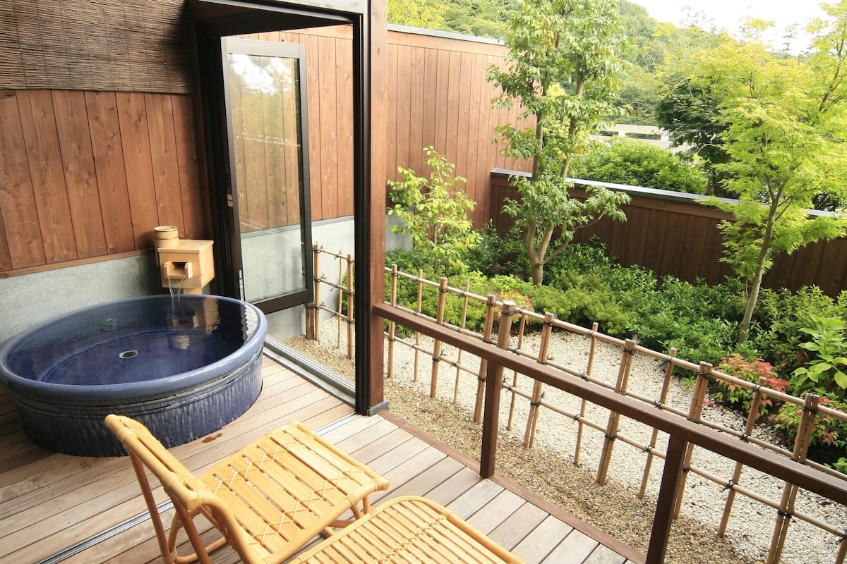 露天風呂付き客室やメゾネットタイプの客室などがあり、人目を気にせず、のんびりくつろげます。