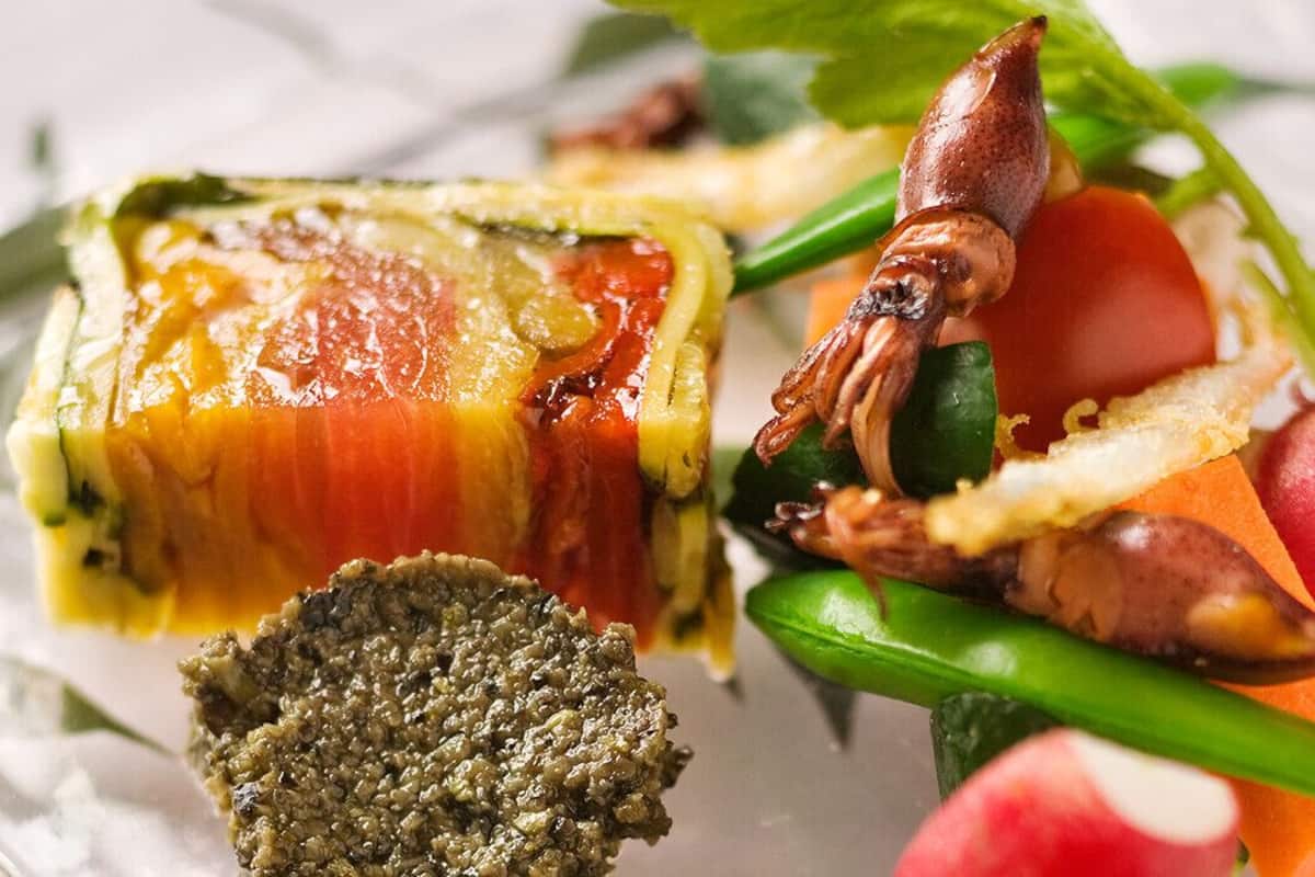 山菜の天ぷらや堅豆腐など、地元の食材を使った会席料理を味わいましょう。