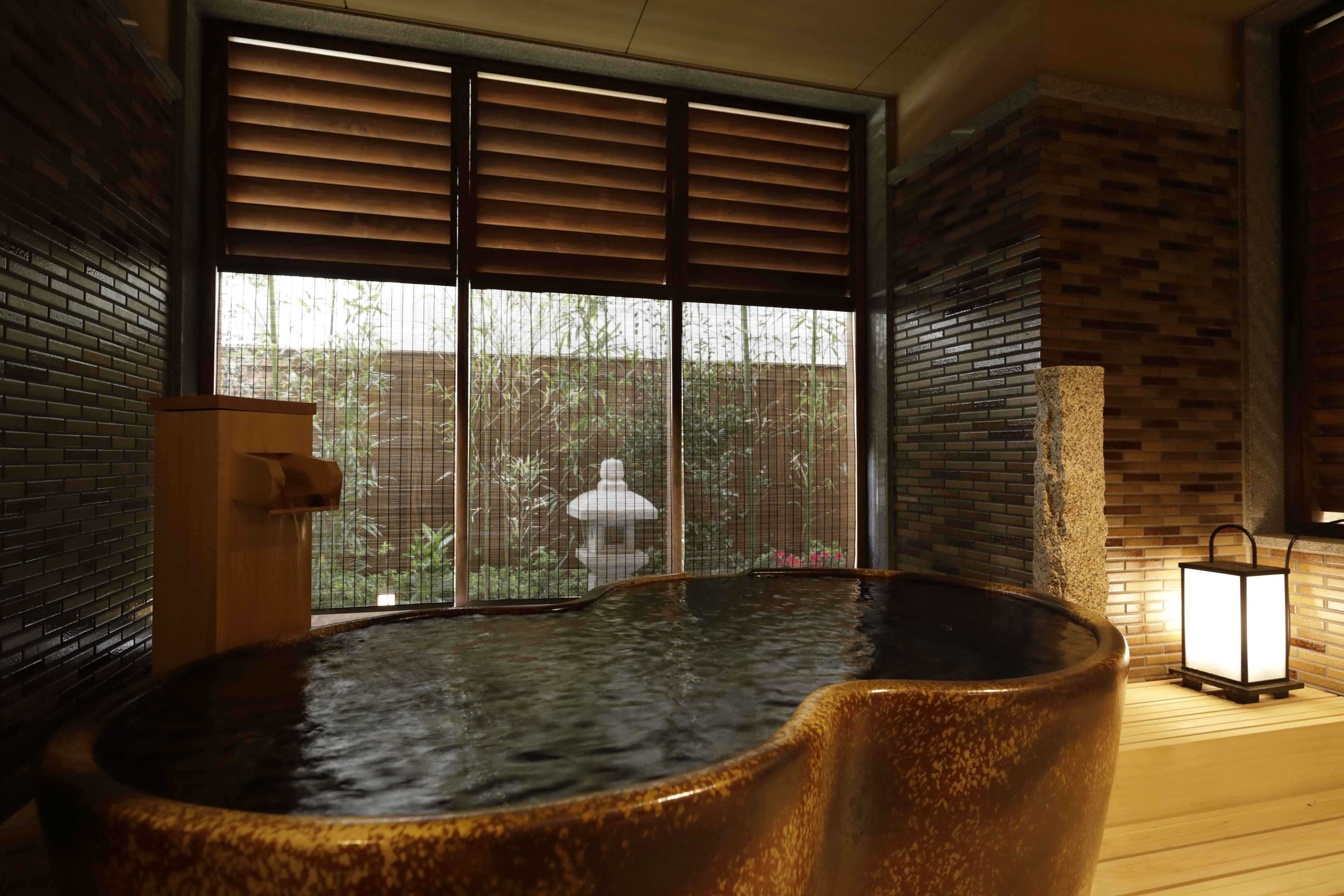 貸切風呂は4種類あり、予約不要で24時間いつでも無料で楽しめます。お風呂上がりには、湯上り処で、中庭を眺めながらくつろぎましょう。