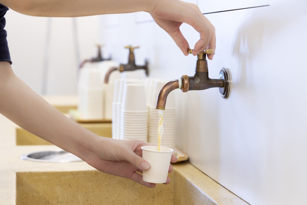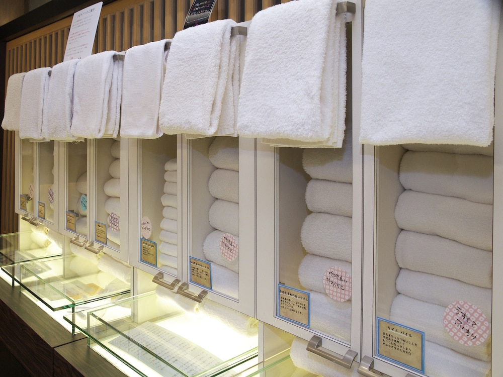 客室でゆっくり過ごしたあとは、館内を散策するのがおすすめ。1階ロビーには「みかんジュース蛇口」があり、飲み比べを楽しめます。今治タオルと色浴衣の貸出しがあるので、支度ができたらさっそく湯巡りへ向かいましょう!