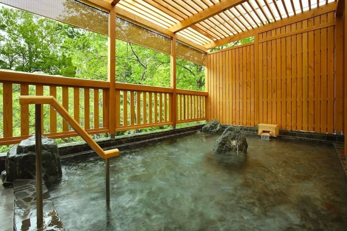 横瀬川に面したテラスに露天風呂があり、景色を眺めながらゆったりとした時間を過ごせます。