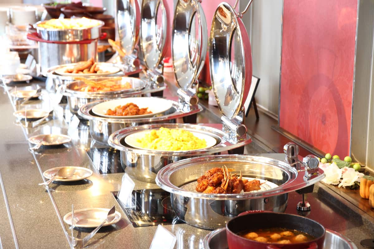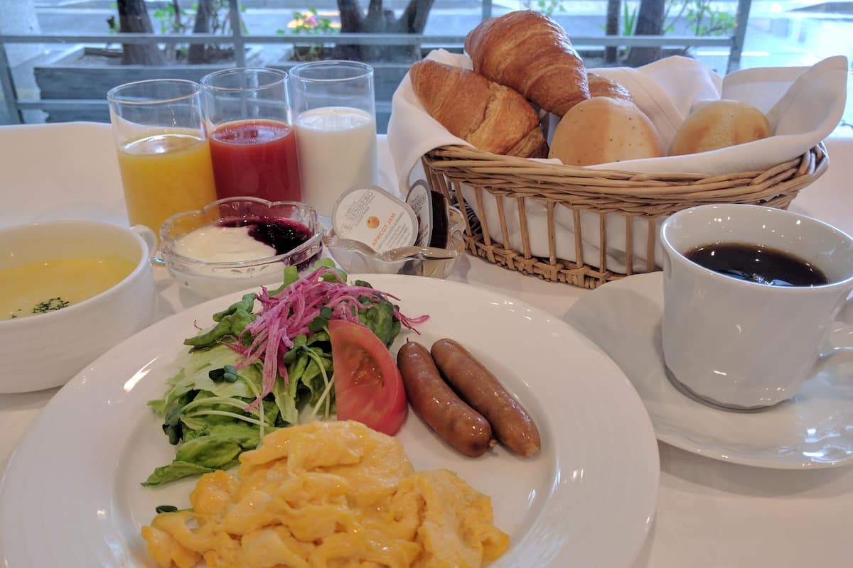 ホテル最上階のレストランで、旬の食材を使った朝食ビュッフェを満喫。眼下には横須賀港に浮かぶ艦船を、遠くには朝日に照らされた富士山を望むことができます。