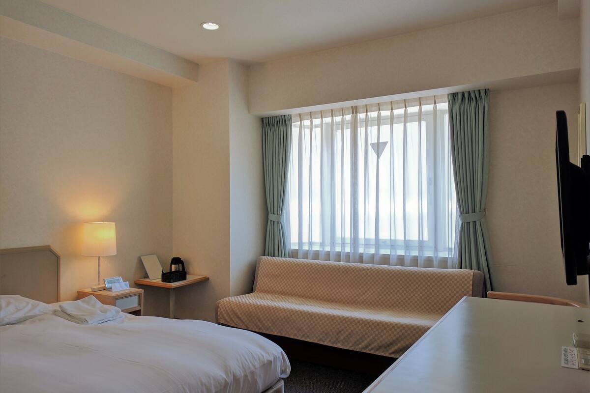 シングルルームでもゆっくり休めるように、セミダブルベッドが完備されています。