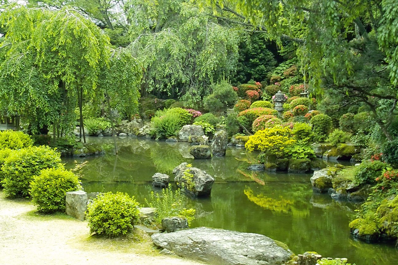 約1万坪の敷地内には千利休が作庭し細川幽斎が改修したという「群芳園」があり、四季の移ろいを楽しめます。