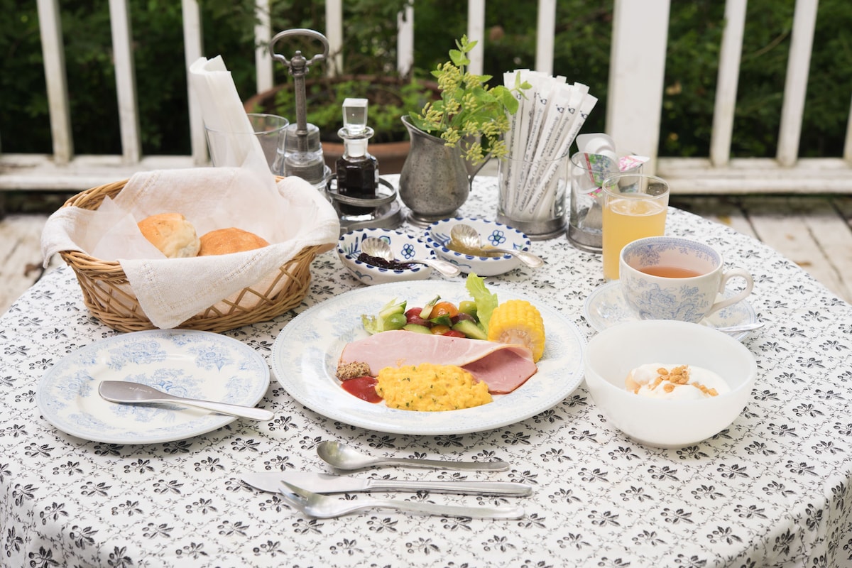 美しい庭園を望めるオープンテラスで、朝食を楽しみましょう。