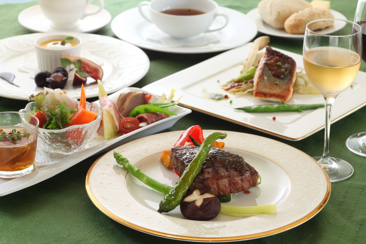 甲州和牛のローストビーフなど、八ヶ岳の食材を存分に味わえる創作料理。厳選ワインとともに、フルコースを楽しめます。