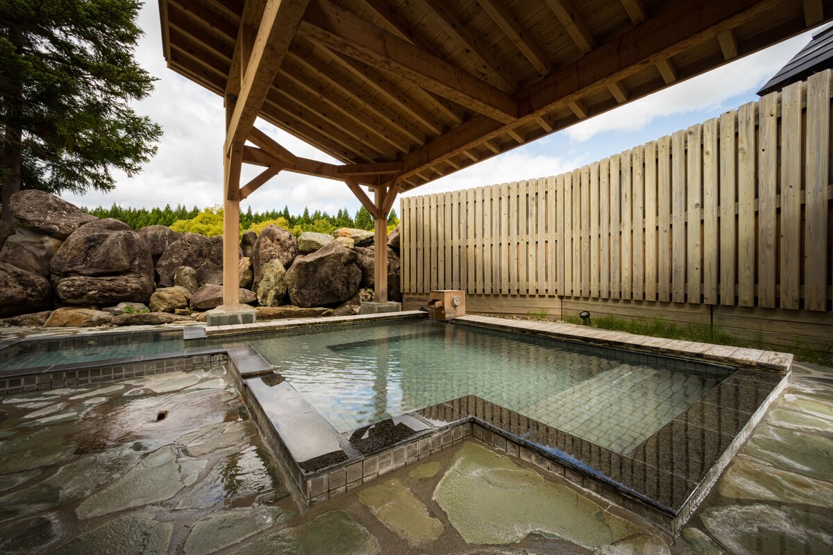 露天風呂や岩盤浴、14種類の湯船を備えた内湯があり、滞在中に湯巡りを堪能できます。