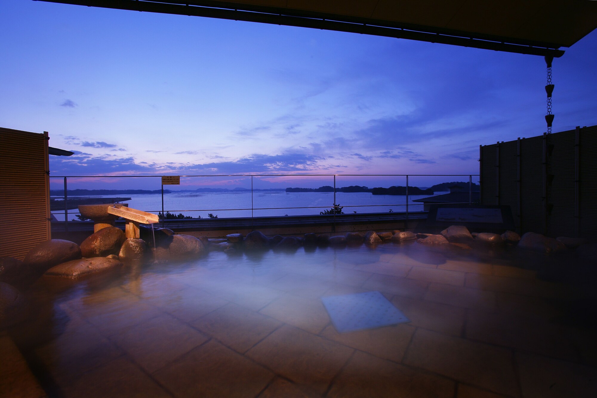 自然に溶け込むように大きくせり出した露天風呂から、松島湾の絶景を一望できます。
