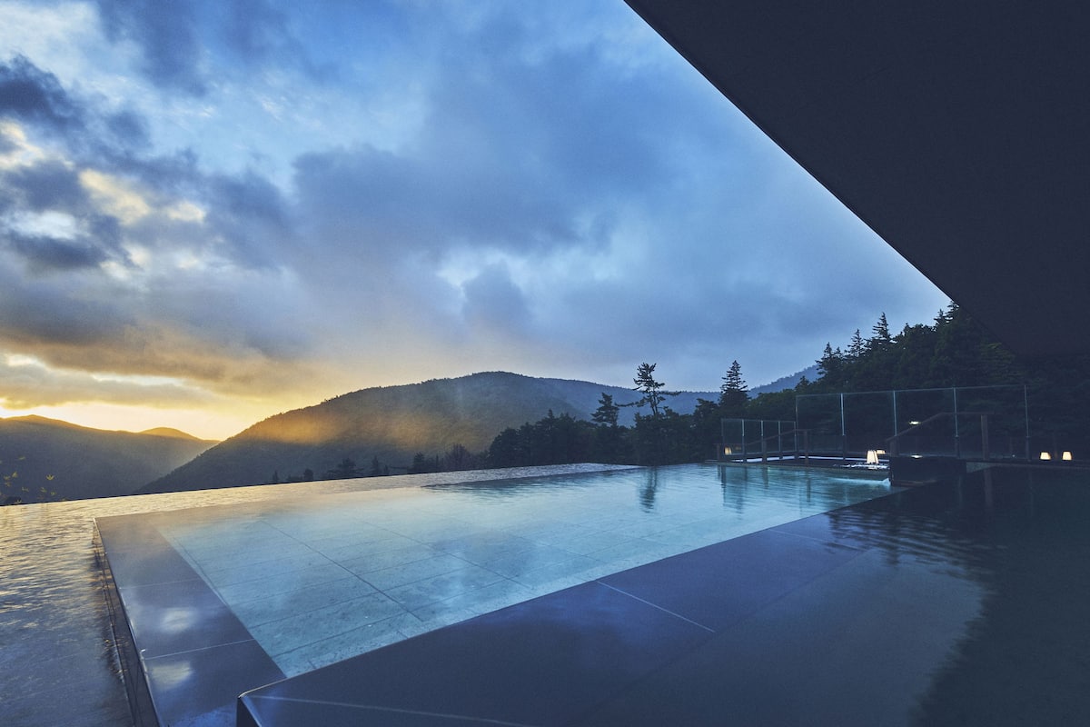 豊かな自然を望めるインフィニティ風呂に入れば、心も体も癒されます。