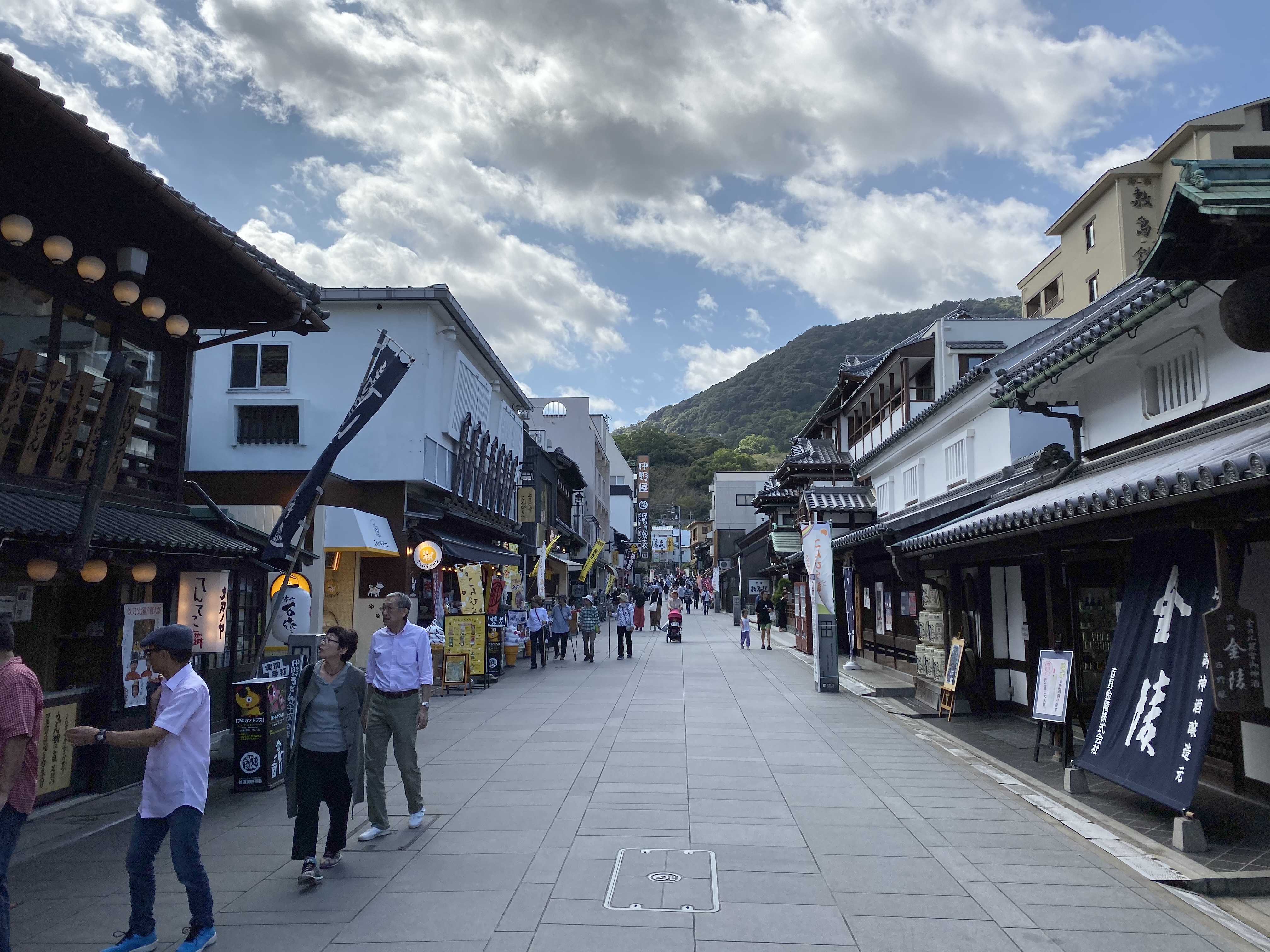 金刀比羅宮への参道には、香川の特産品を扱う店や酒蔵、名物の「おいりソフト」など、見どころが盛りだくさんです。