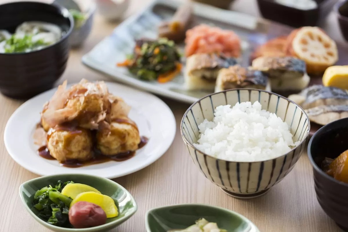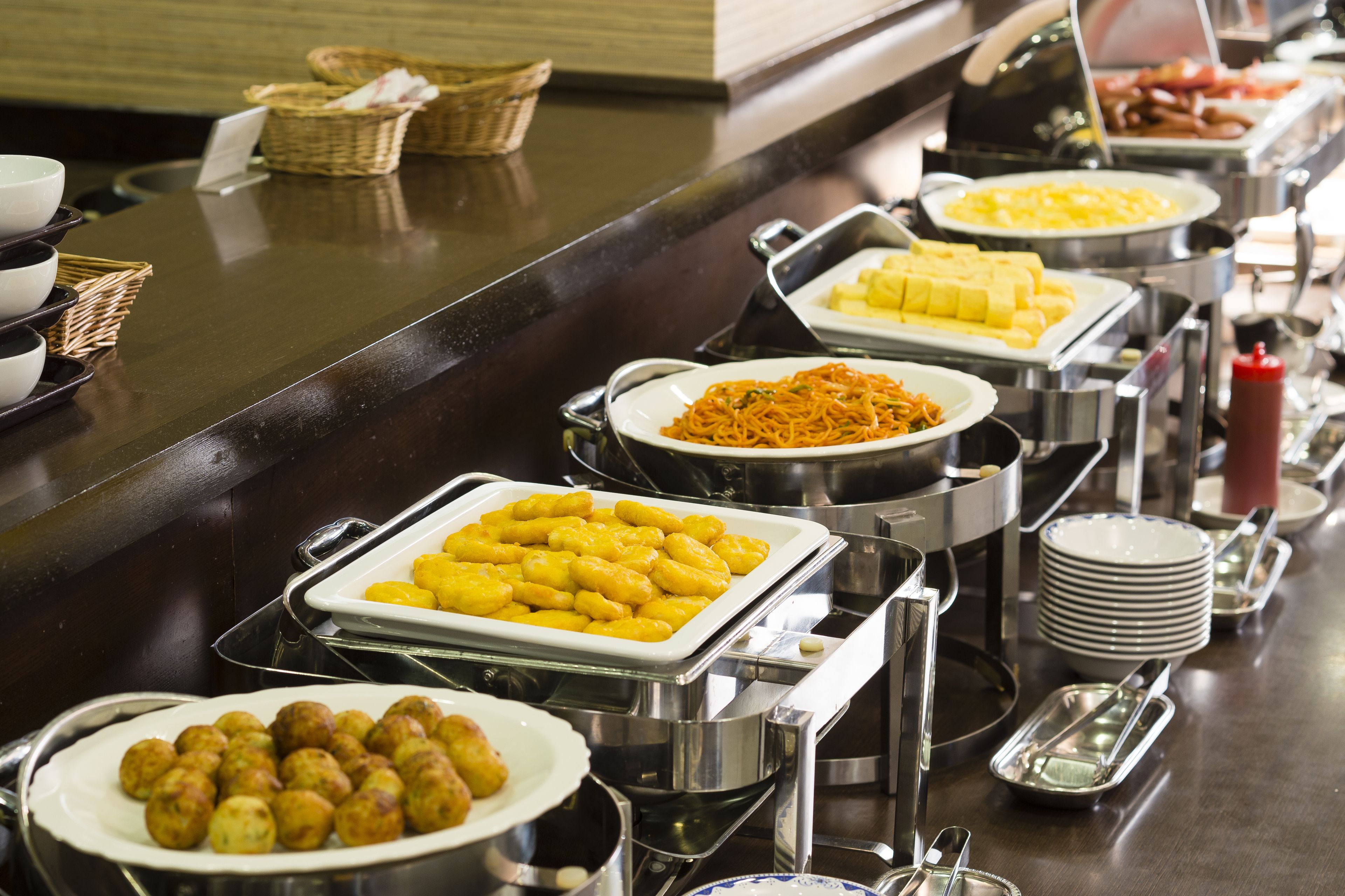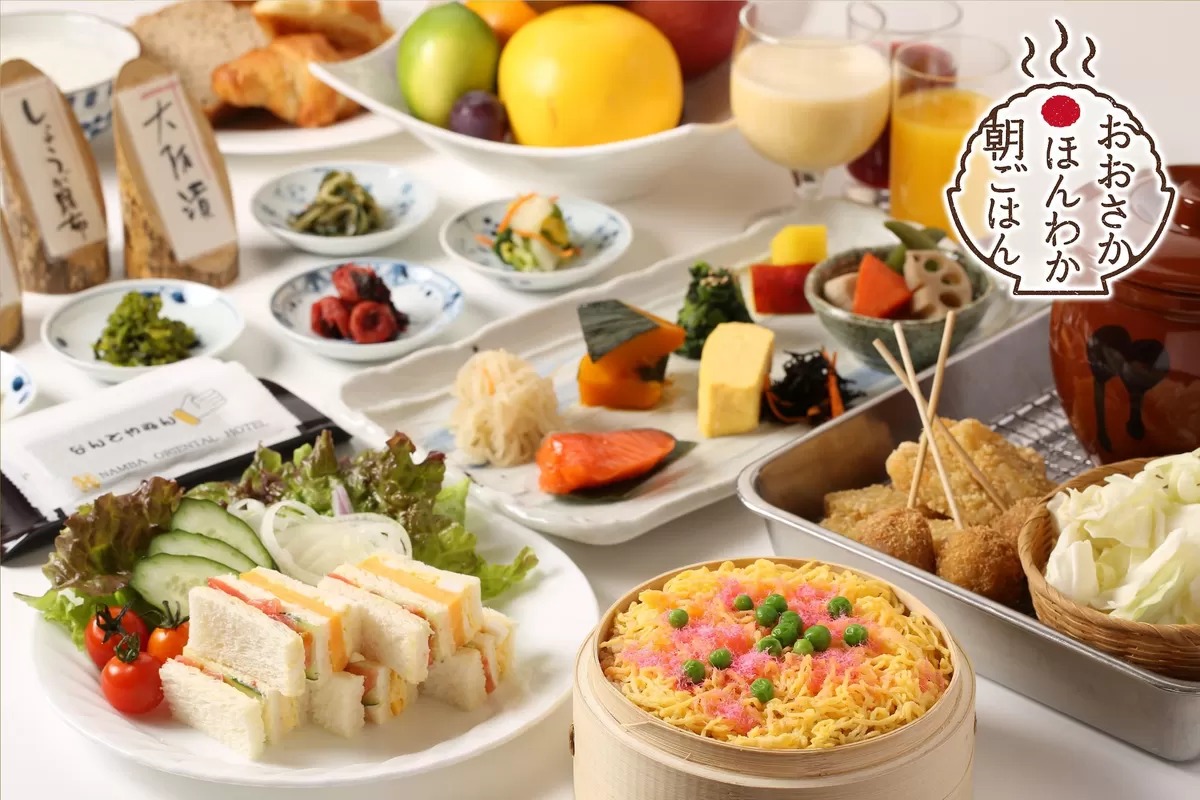 串かつ、肉吸い、近郊野菜のサラダなど、大阪グルメが並ぶブッフェで朝から元気に。