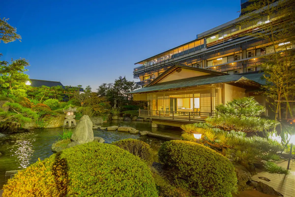ライトアップされた夜の日本庭園は美しく、時を忘れて眺めていられます。